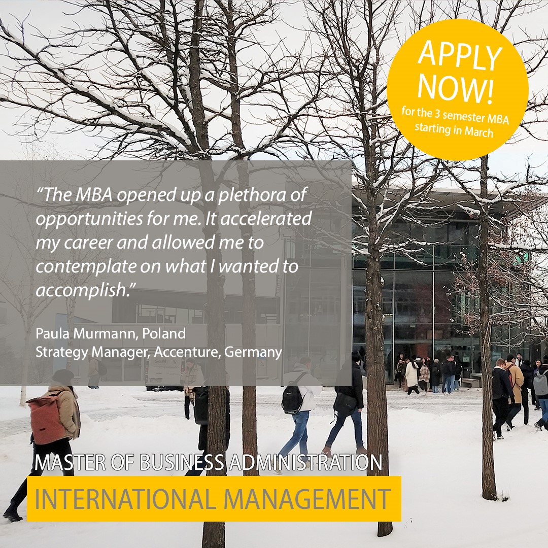Are you holding a business degree? Then you are eligible to apply for our 3 semester MBA in International Management starting in March 2024.