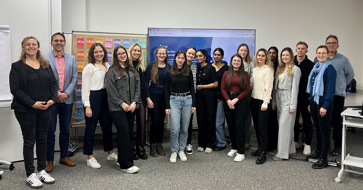 Am 14. Februar waren die Bachelorstudierenden des Studiengangs Betriebswirtschaft/Personalmanagement unter der Leitung von Prof. Dr. Markus-Oliver Schwaab zur Abschlusspräsentation ihres Lehrprojekts beim Bayerischen Volkshochschulverband in München.