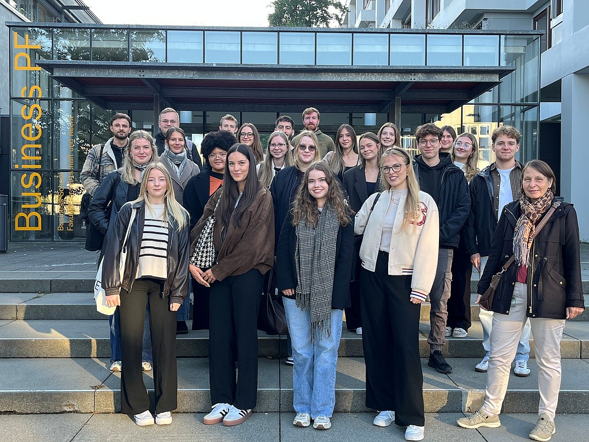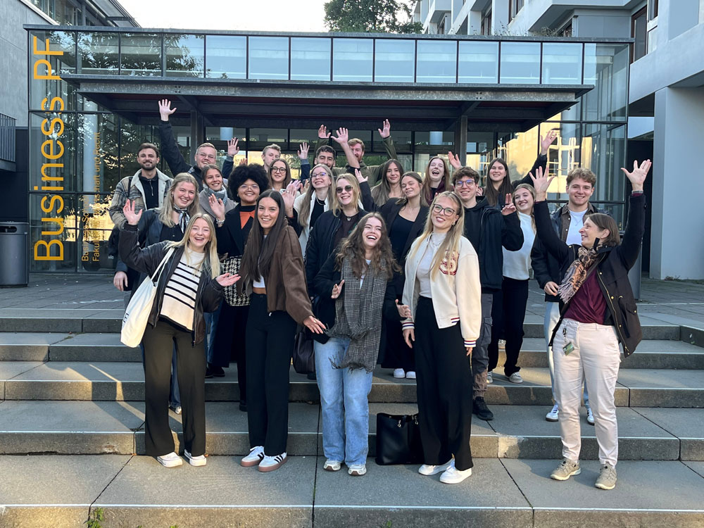 Gemeinsam mit den weiteren Masterprogrammen der Business School nahmen die Studierenden anschließend an einer zentralen Begrüßungsveranstaltung im Audimax der Hochschule Pforzheim teil. Ein geführter Rundgang über den Campus, organisiert von zwei Studierenden aus dem dritten Semester, bot den neuen MMIler*innen danach die Gelegenheit, wichtige Orte der Hochschule kennenzulernen und erste Orientierung zu gewinnen.