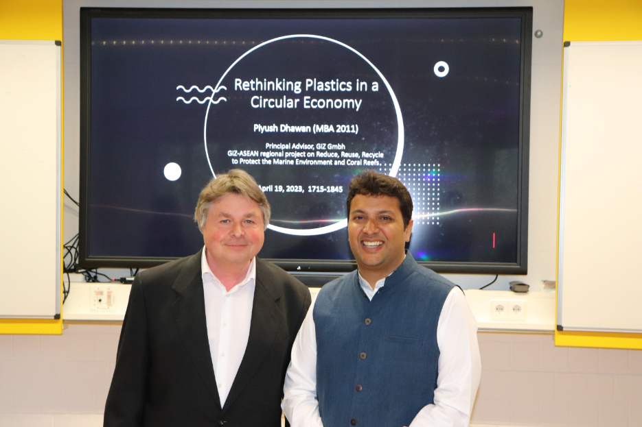 Mr. Piyush Dhawan, an alumnus of the MBA batch of 2011, currently working as Principal Advisor for Deutsche Gesellschaft für Internationale Zusammenarbeit (GIZ) GmbH, recently delivered a guest lecture at Pforzheim University that touched upon a range of important topics related to sustainability. With his extensive experience in this field, Mr. Dhawan provided valuable insights into the challenges of single-use plastic, the importance of circular economy, and his personal career progression and experiences.