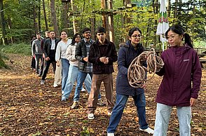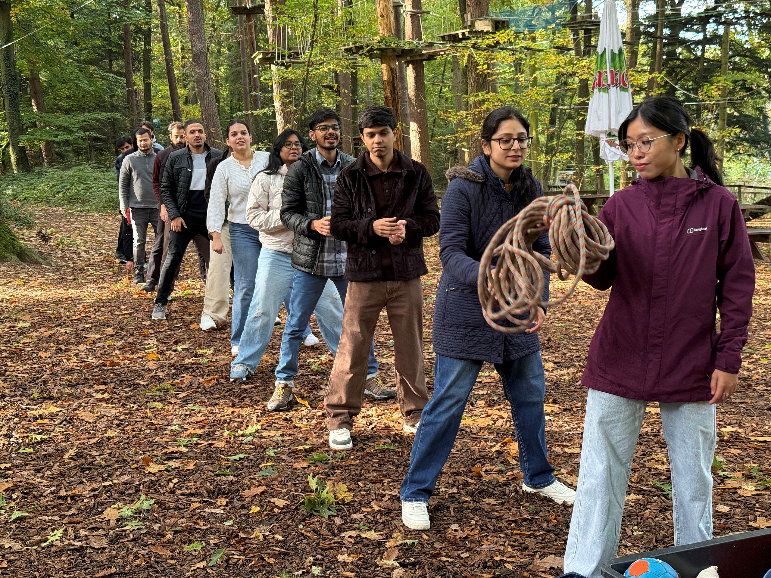 As part of a recent MBA team-building exercise held in a forest setting, students participated in an activity designed to enhance memory, collaboration, and strategic thinking. Participants were asked to memorize cards placed on the ground, each marked with letters and numbers on the back, and later arrange them in the correct alphabetical and numerical order. The group adopted a strategy in which each member memorized three letters or numbers and only flipped cards not assigned to others. Despite their organized approach, the team was unsuccessful, having overlooked two identical letters and discovered that one number was missing.The outcome highlighted the importance of coordination, collective verification, and effective communication in achieving group success—key lessons directly applicable to leadership and management practice.